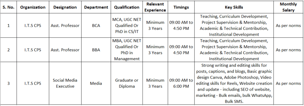 The available job openings are listed in the below table.